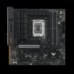 ASUS TUF GAM B760M-PLUS WIF II Product ID: 69674 Mnfr. Part#: TUF GAMING B760M-PLUS WIFI II • CPU`s supported: Intel® Socket LGA1700 for Intel® Coreâ„¢ 14th & 13th Gen Processors, Intel® Coreâ„¢ 12th Gen, Pentium® Gold and Celeron® Processors*; Supports Intel® Turbo Boost Technology 2.0 and Intel® Turbo Boost Max Technology 3.0** • Memory type: 4 x DIMM slots, Max. 192GB, DDR5 7800+(OC)/7000(OC)/6800(OC)/6600(OC)/6400(OC)/ 6200(OC)/ 6000(OC)/ 5800(OC)/ 5600/ 5400/ 5200/ 5000/ 4800 Non-ECC, Un-buffered Memory*; Dual Channel Memory Architecture; Supports Intel® Extreme Memory Profile (XMP); OptiMem II • Chipset: Intel® B760 Chipset • Graphics: 1 x DisplayPort**; 1 x HDMIâ„¢port*** • Expansion Slots: Intel® CoreTM Processors (14th & 13th & 12th Gen)*; 1 x PCIe 5.0 x16 slot; Intel® B760 Chipset; 1 x PCIe 4.0 x4 slot; 1 x PCIe 3.0 x1 slot • Storage: Supports 3 x M.2 slots and 4 x SATA 6Gb/s ports*; Intel® CoreTM Processors (14th & 13th & 12th Gen); M.2_1 slot (Key M), type 2242/2260/2280 (supports PCIe 4.0 x4 mode); Intel® B760 Chipset; M.2_2 slot (Key M), type 2242/2260/2280 (supports PCIe 4.0 x4 mode); M.2_3 slot (Key M), type 2242/2260/2280 (supports PCIe 4.0 x2 mode); 4 x SATA 6Gb/s ports • I/O: 1 x USB 20Gbps port (1 x USB Type-C®); 1 x USB 10Gbps port (1 x Type-A); 2 x USB 5Gbps ports (2 x Type-A); 4 x USB 2.0 ports (4 x Type-A); 1 x DisplayPort; 1 x HDMIâ„¢ port; 1 x Wi-Fi Module; 1 x Realtek 2.5Gb Ethernet port; 5 x Audio jacks; 1 x Optical S/PDIF out port • Connectors: 1 x 4-pin CPU Fan header; 1 x 4-pin CPU OPT Fan header; 1 x 4-pin AIO Pump header; 3 x 4-pin Chassis Fan headers; 1 x 24-pin Main Power connector; 2 x 8-pin +12V Power connectors; 3 x M.2 slots (Key M) ; 4 x SATA 6Gb/s ports; 1 x USB 10Gbps connector (supports USB Type-C® ); 1 x USB 5Gbps header supports 2 additional USB 5Gbps ports; 3 x USB 2.0 headers support 5 additional USB 2.0 ports; 3 x Addressable Gen 2 headers; 1 x Clear CMOS header; 1 x Front Panel Audio header (AAFP) ; 1 x 20-3 pin System Panel header with Chassis intrude function; 1 x Thunderboltâ„¢ (USB4®) header • Audio: Realtek 7.1 Surround Sound High Definition Audio CODEC; - Supports: Jack-detection, Multi-streaming, Front Panel Jack-retasking; - Supports up to 24-Bit/192 kHz playback; Audio Features; - Audio Shielding; - Rear optical S/PDIF out port; - Premium audio capacitors; - Dedicated audio PCB layers • LAN: 1 x Realtek 2.5Gb Ethernet; TUF LANGuard • BIOS: 128 Mb Flash ROM, UEFI AMI BIOS • Form Factor: mATX Form Factor; 9.6inch x 9.6 inch ( 24.4 cm x 24.4 cm ) • OS: Windows® 11, Windows® 10 64-bit • Other: Wi-Fi 6E; 2x2 Wi-Fi 6E (802.11ax); Supports 2.4/5/6GHz frequency band*; Bluetooth® v5.3** • Warranty: 36 Months https://www.asus.com/motherboards-components/motherboards/tuf-gaming/tuf-gaming-b760m-plus-wifi-ii/techspec/ ASUS TUF GAM B760M-PLUS WIF II