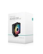DEEPCOOL AG400 ARGB /1700/AM5 Product ID: 70508 Mnfr. Part#: GP-G-AG400-ARGB • Manufacturer: DEEPCOOL • Voltage: 12 VDC • CPU Socket Support: Intel: LGA1851/ 1700/ 1200/ 1151/ 1150/ 1155; AMD: AM5/AM4 • Fan Information: Fan speed: 500~2000 RPM±10%;Fan Airflow: 75.89 CFM;Fan Air Pressure: 2.53 mmAq;Fan Noise: ?31.6 dB(A);Fan Connector: 4-pin PWM;Fan Rated Current: 0.28 A;Fan Power Consumption: 3.36 W;Fan Power Consumption: 3.36 W;LED Type: Addressable RGB LED;LED Rated Voltage: 5 VDC;LED Power Consumption: 1.05 W • Bearing: Hydro Bearing • Dimensions: 125?92?150 mm • Warranty: 24 Months https://www.deepcool.com/products/Cooling/cpuaircoolers/AG400-BK-ARGB-120mm-CPU-Cooler-1851-1700-AM5/2022/16085.shtml DEEPCOOL AG400 ARGB /1700/AM5