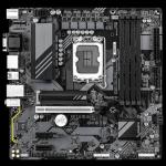 GB B760M DS3H GEN5 / LGA1700 Product ID: 71861 Mnfr. Part#: B760M DS3H GEN5 • USB: Chipset:;- 1 x USB Type-C® port on the back panel, with USB 3.2 Gen 2 support;- 5 x USB 3.2 Gen 1 ports (3 ports on the back panel, 2 ports available through the internal USB header);- 2 x USB 2.0/1.1 ports on the back panel;Chipset+USB 2.0 Hub:;- 4 x USB 2.0/1.1 ports available through the internal USB headers • Manufacturer: GIGABYTE • Memory type: 14th and 13th Generation Intel® Coreâ„¢ i9/i7 Processors:;Support for DDR5 7600(O.C.) /7400(O.C.) /7200(O.C.) /7000(O.C.) /6800(O.C.) /6600(O.C.) / 6400(O.C.) / 6200(O.C.) / 6000(O.C.) / 5800(O.C.)/ 5600/5200/4800/4400 MT/s memory modules;13th Generation Intel® Coreâ„¢ i5/i3 and 12th Generation Intel® Coreâ„¢, Pentium® Gold and Celeron® Processors:;Support for DDR5 4800/4400 MT/s memory modules;4 x DDR5 DIMM sockets supporting up to 256 GB (64 GB single DIMM capacity) of system memory;Dual channel memory architecture;Support for ECC Un-buffered DIMM 1Rx8/2Rx8 memory modules (operate in non-ECC mode);Support for non-ECC Un-buffered DIMM 1Rx8/2Rx8/1Rx16 memory modules;Support for Extreme Memory Profile (XMP) memory modules • Features: Support for GIGABYTE Control Center (GCC);* Available applications in GCC may vary by motherboard model. Supported functions of each application may also vary depending on motherboard specifications.;Support for Q-Flash;Support for Q-Flash Plus;Support for Smart Backup • CPU`s supported: LGA1700 socket: Support for the 14th, 13th, and 12th Generation Intel® Coreâ„¢, Pentium® Gold and Celeron® Processors;L3 cache varies with CPU • Chipset: Intel® B760 Express Chipset • Graphics: Integrated Graphics Processor-Intel® HD Graphics support:;- 1 x D-Sub port, supporting a maximum resolution of 1920x1200@60 Hz;- 1 x HDMI port, supporting a maximum resolution of 4096x2160@60 Hz;* Support for HDMI 2.1 version and HDCP 2.3.;** Support for native HDMI 2.1 TMDS compatible ports.;- 1 x DisplayPort, supporting a maximum resolution of 4096x2304@60 Hz;* Support for DisplayPort 1.2 version and HDCP 2.3;- 1 x DisplayPort, supporting a maximum resolution of 4096x2304@60 Hz;* Support for DisplayPort 1.2 version.;Support for up to quad-display at the same time • Expansion Slots: CPU:;- 1 x PCI Express x16 slot, supporting PCIe 5.0 and running at x16;* The PCIEX16 slot can only support a graphics card or an NVMe SSD.;Chipset:;- 2 x PCI Express x1 slots, supporting PCIe 3.0 and running at x1 • Storage: CPU:;- 1 x M.2 connector (Socket 3, M key, type 2280 PCIe 4.0 x4/x2 SSD support) (M2A_CPU);Chipset:;- 1 x M.2 connector (Socket 3, M key, type 2280 PCIe 4.0 x4/x2 SSD support) (M2P_SB);- 4 x SATA 6Gb/s connectors;RAID 0, RAID 1, RAID 5, and RAID 10 support for SATA storage devices • I/O: iTE® I/O Controller Chip • Connectors: 1 x 24-pin ATX main power connector;1 x 8-pin ATX 12V power connector;1 x CPU fan header;3 x system fan headers;2 x addressable RGB Gen2 LED strip headers;1 x RGB LED strip header;2 x M.2 Socket 3 connectors;4 x SATA 6Gb/s connectors;1 x front panel header;1 x front panel audio header;1 x USB 3.2 Gen 1 header;2 x USB 2.0/1.1 headers;1 x Trusted Platform Module header (For the GC-TPM2.0 SPI/GC-TPM2.0 SPI 2.0/GC-TPM2.0 SPI V2 module only);1 x serial port header;1 x parallel port header;1 x S/PDIF Out header;1 x Q-Flash Plus button;1 x reset jumper;1 x Clear CMOS jumper;Back Panel Connectors;2 x USB 2.0/1.1 ports;1 x PS/2 keyboard/mouse port;1 x D-Sub port (Note);1 x HDMI port (Note);2 x DisplayPorts (Note);3 x USB 3.2 Gen 1 ports;1 x USB Type-C® port, with USB 3.2 Gen 2 support;1 x RJ-45 port;3 x audio jacks • Audio: Realtek® Audio CODEC;High Definition Audio;2/4/5.1/7.1-channel;* You can change the functionality of an audio jack using the audio software. To configure 7.1-channel audio, access the audio software for audio settings.;Support for S/PDIF Out • LAN: Realtek® 2.5GbE LAN chip (2.5 Gbps/1 Gbps/100 Mbps) • BIOS: 1 x 128 Mbit flash;Use of licensed AMI UEFI BIOS;PnP 1.0a, DMI 2.7, WfM 2.0, SM BIOS 2.7, ACPI 5.0 • Form Factor: Micro ATX Form Factor; 24.4cm x 24.4cm • OS: Support for Windows 11 64-bit;Support for Windows 10 64-bit https://www.gigabyte.com/Motherboard/B760M-DS3H-GEN5 GB B760M DS3H GEN5 / LGA1700